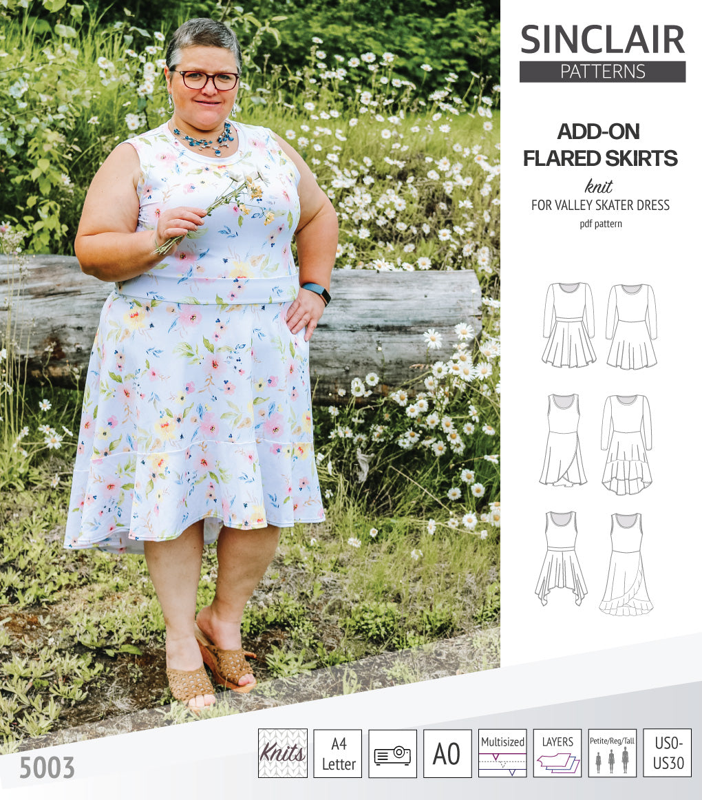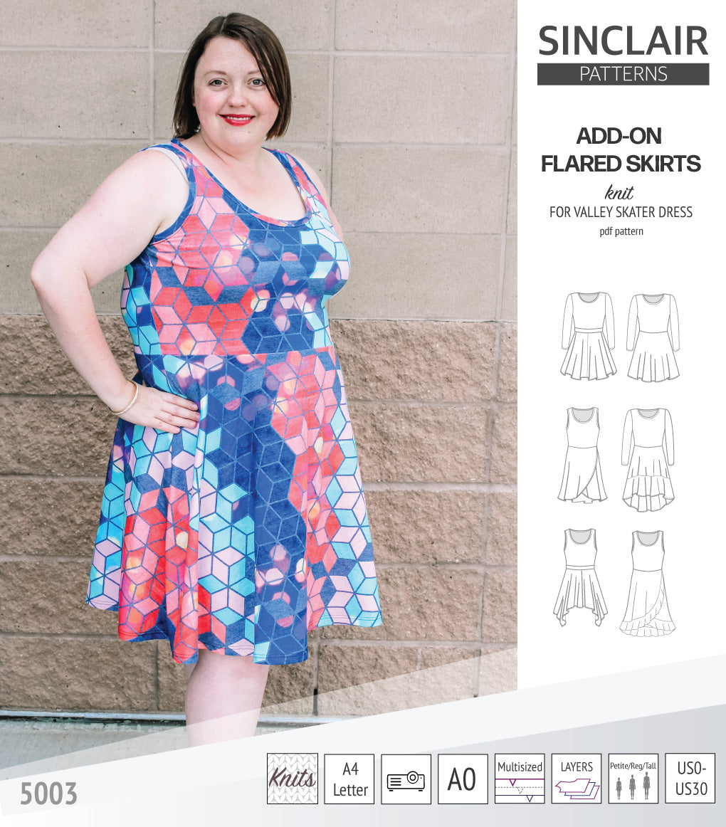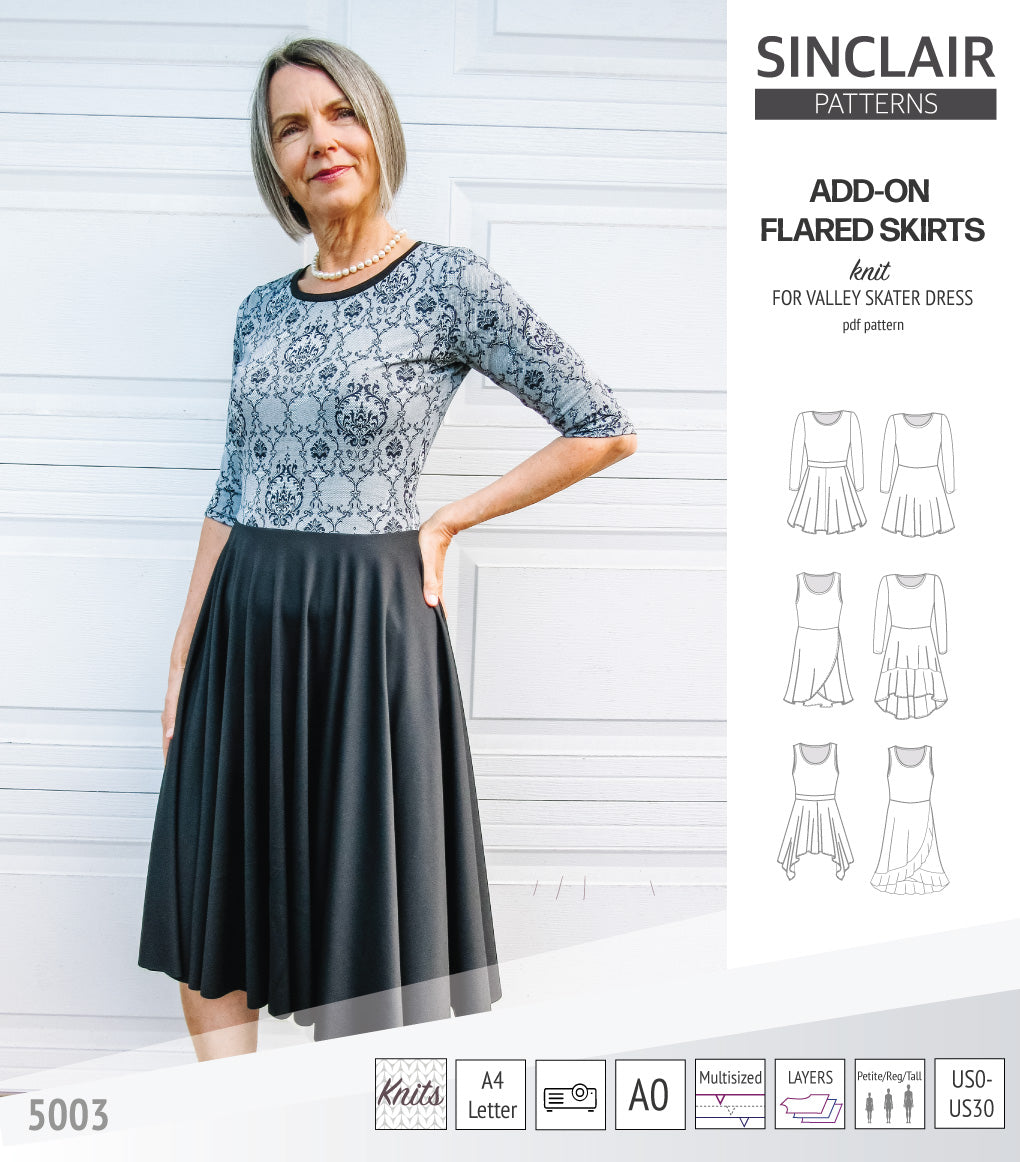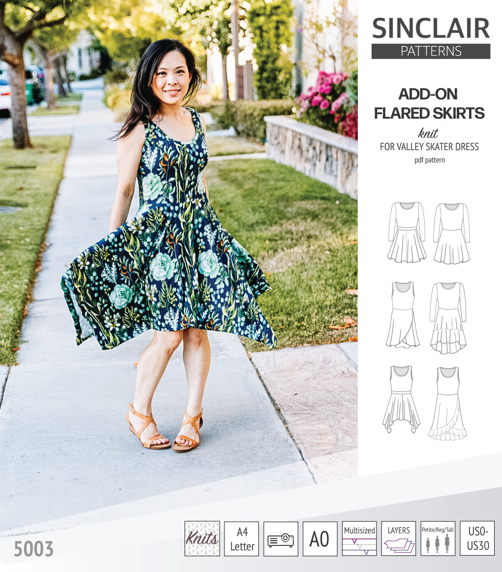 Featuring:  a new add-on pack that includes 6 different styles of flared skirts that can be made as separate garments or added as a skirt to the Valley skater dress.