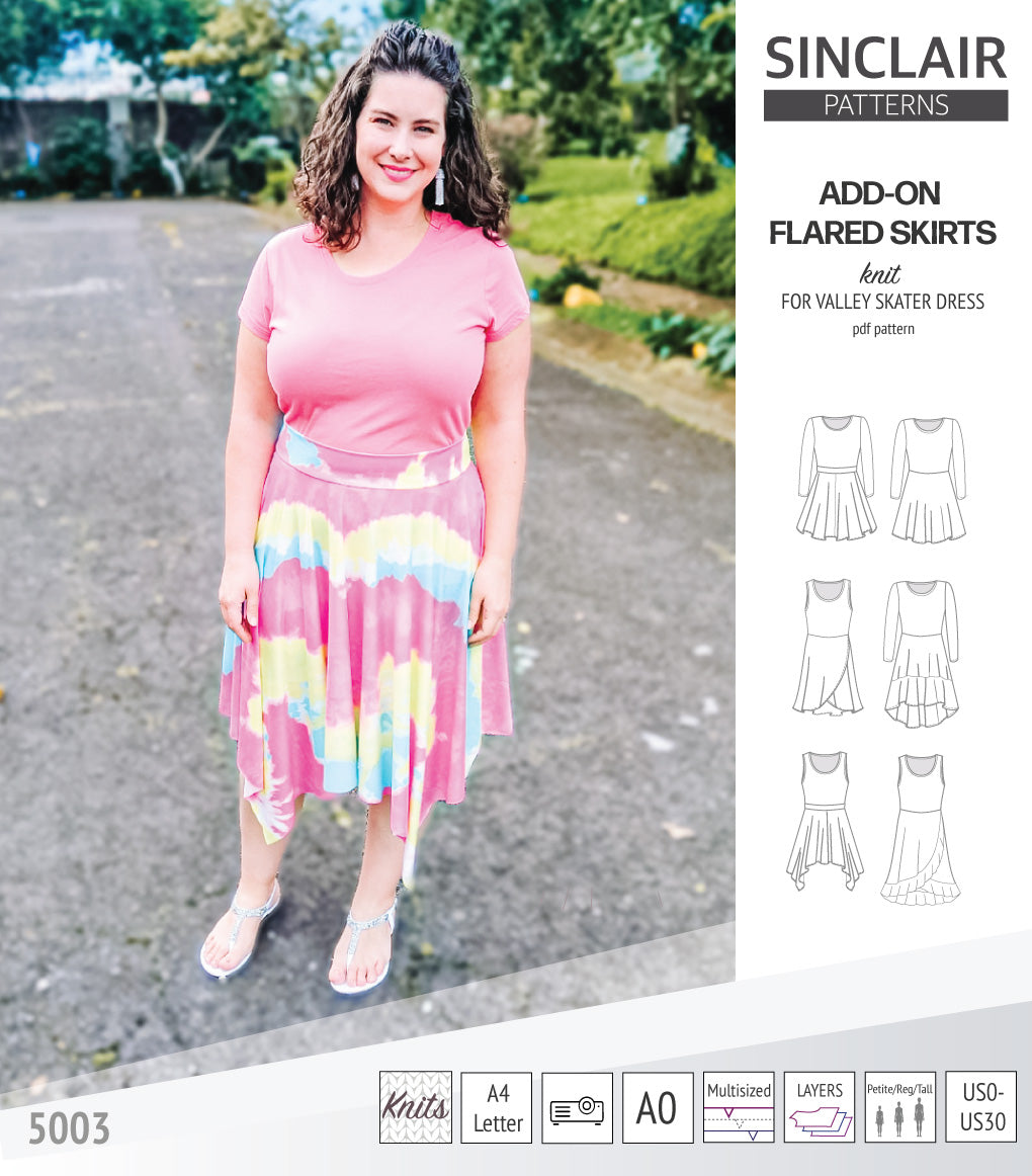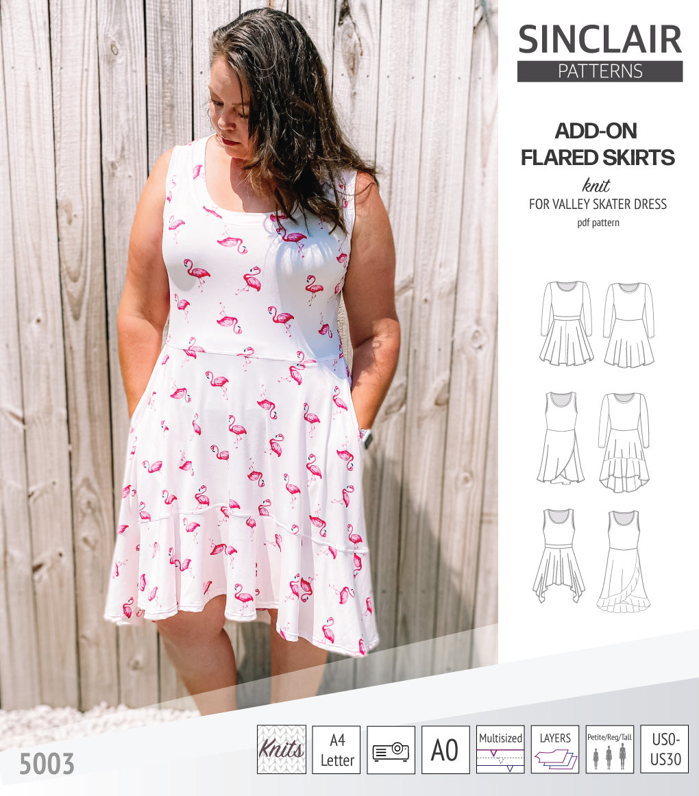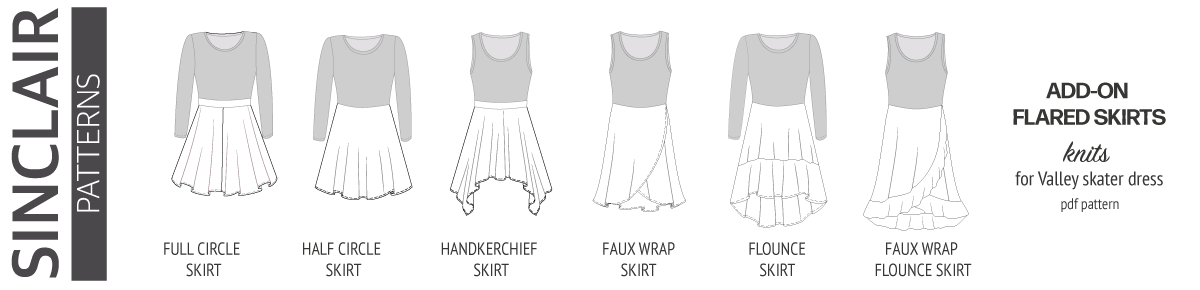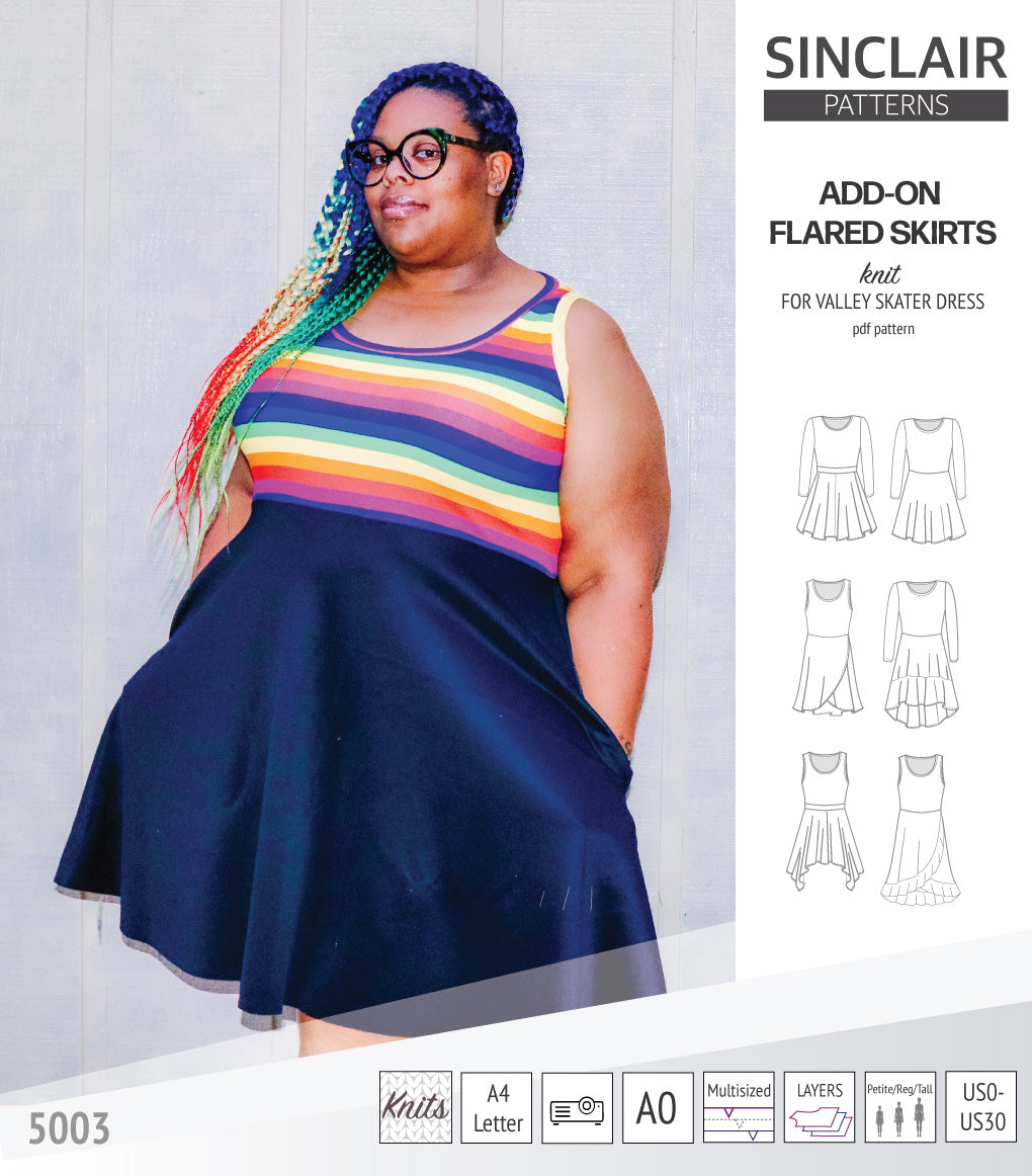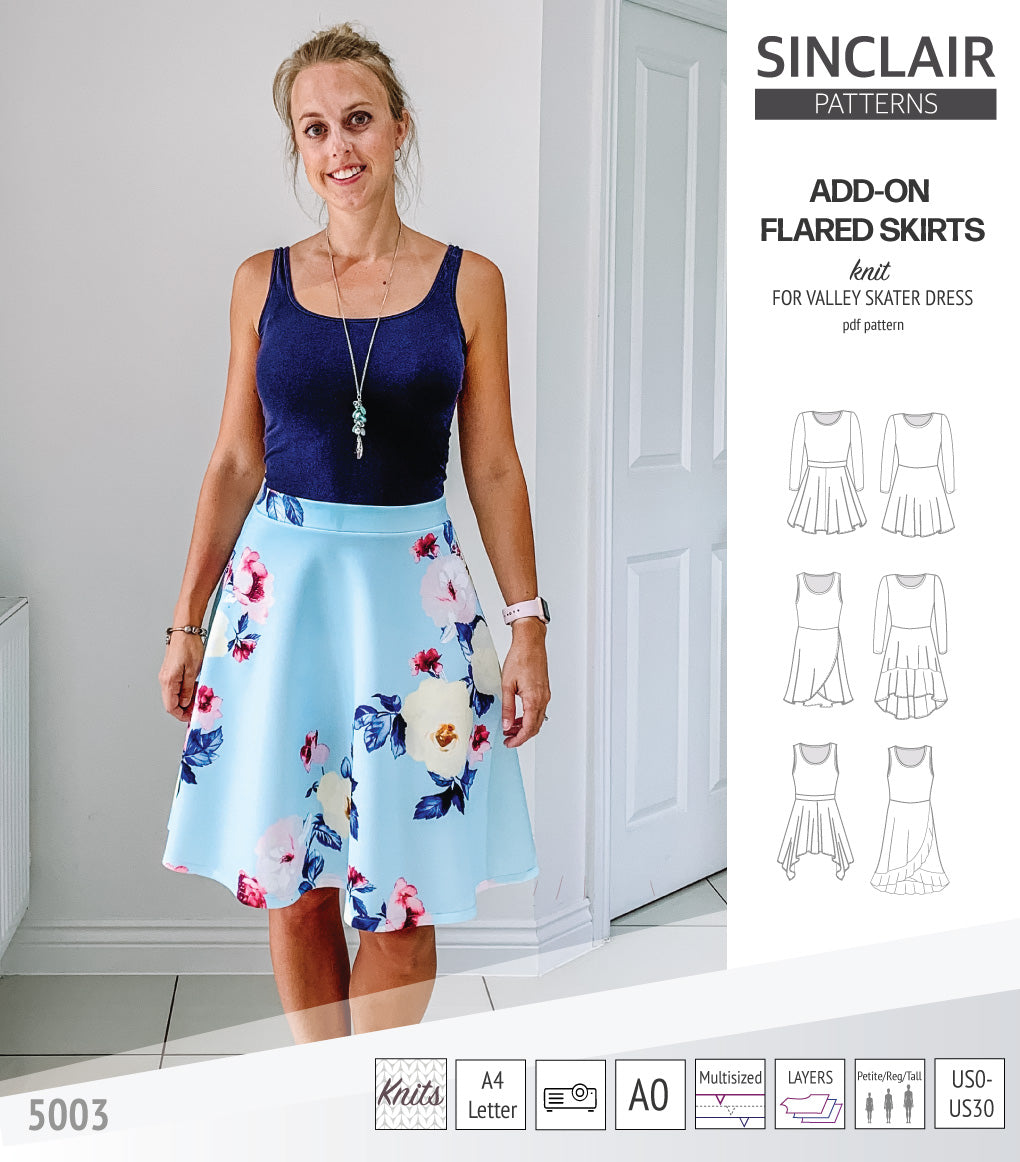 Featuring:  a new add-on pack that includes 6 different styles of flared skirts that can be made as separate garments or added as a skirt to the Valley skater dress.