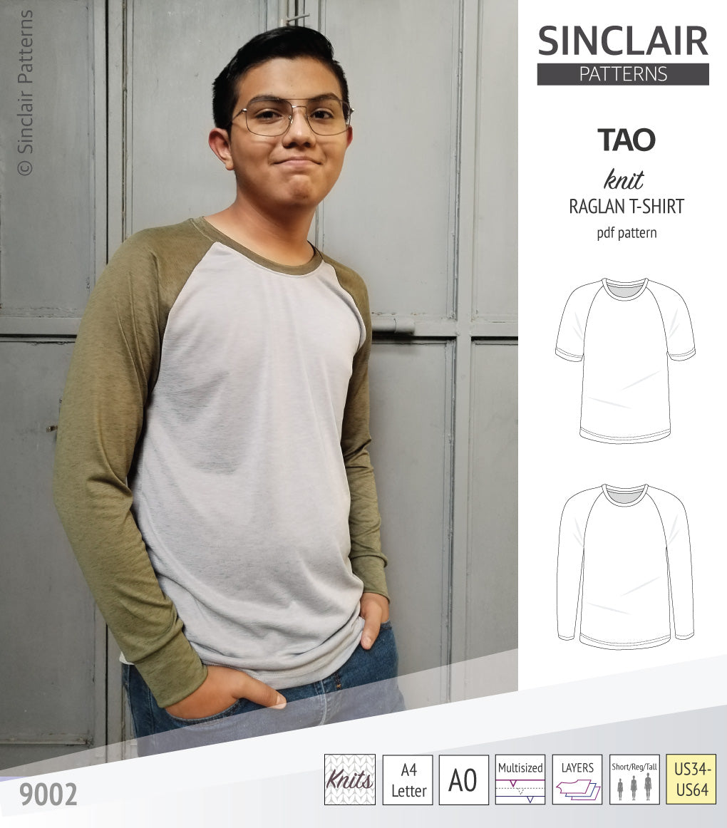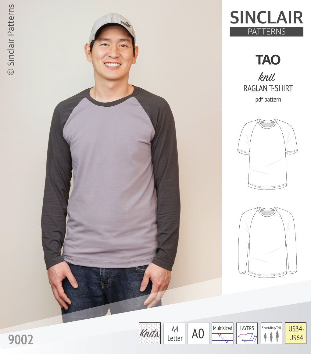 Tao semi fitted classic raglan t-shirt for men (PDF)