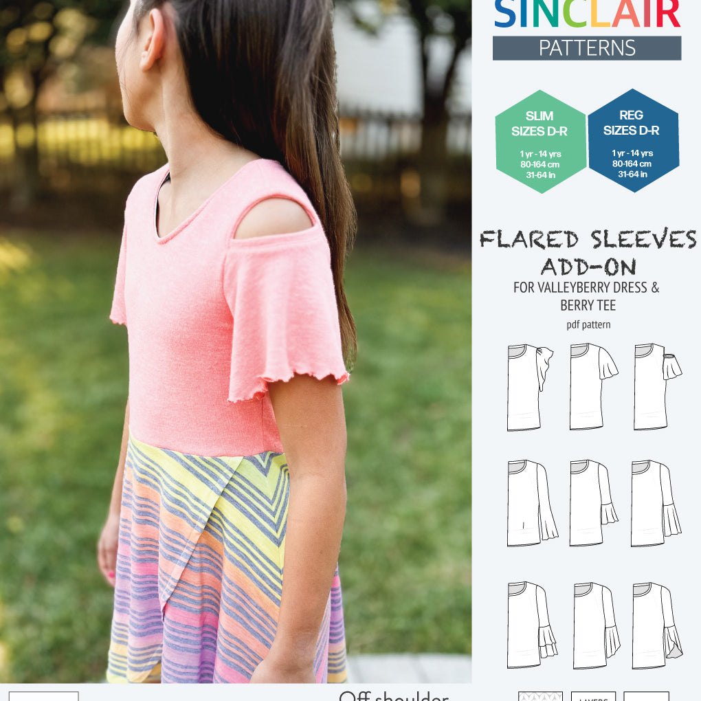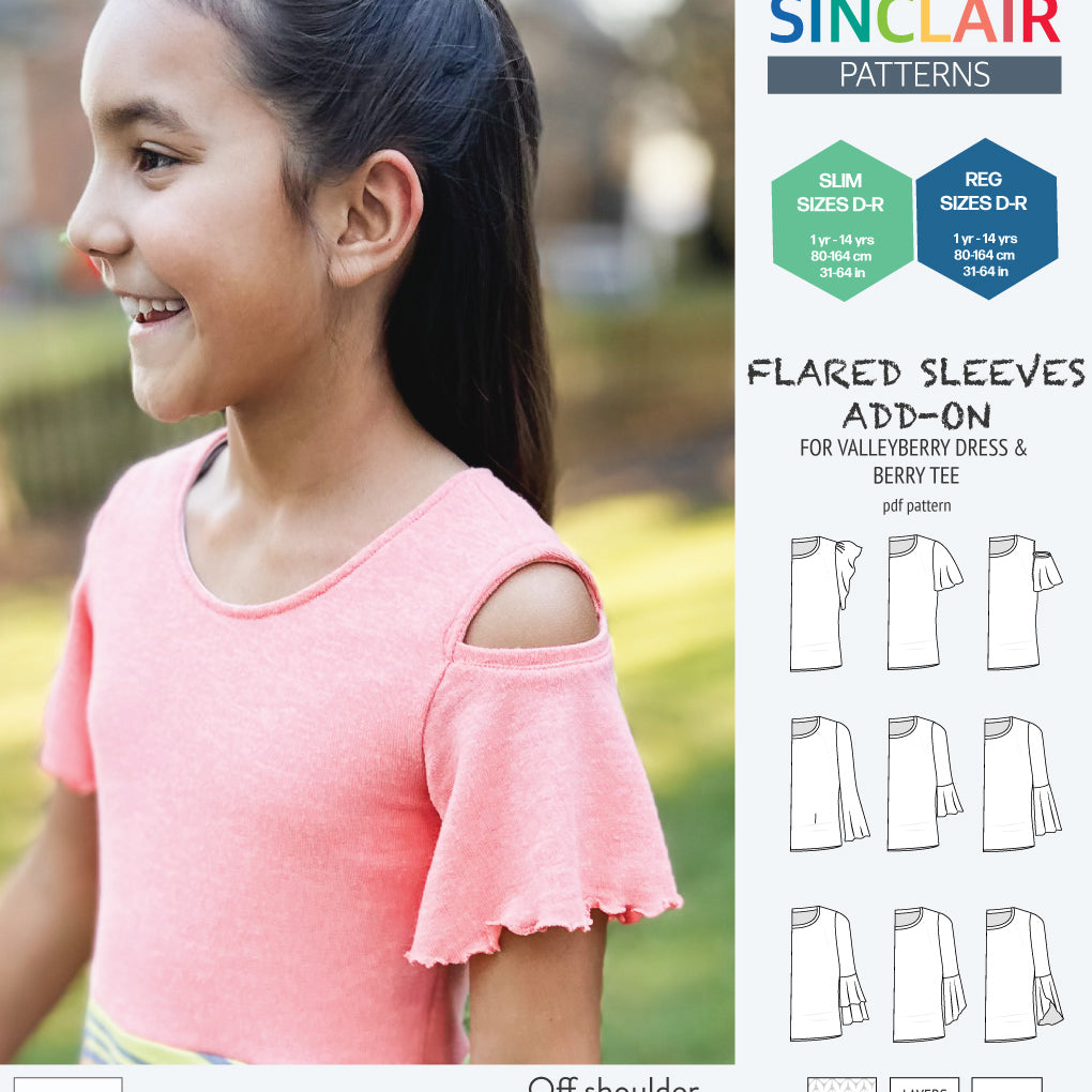 ADD-ON Flared Sleeves add-on pack for Valleyberry dress and Berry tee other compatible patterns for children (PDF)