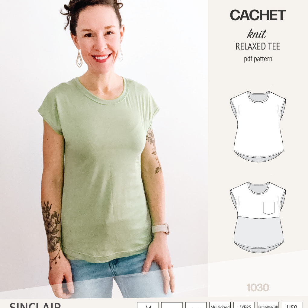 Cachet relaxed cut knit tee color blocked with a pocket (PDF)