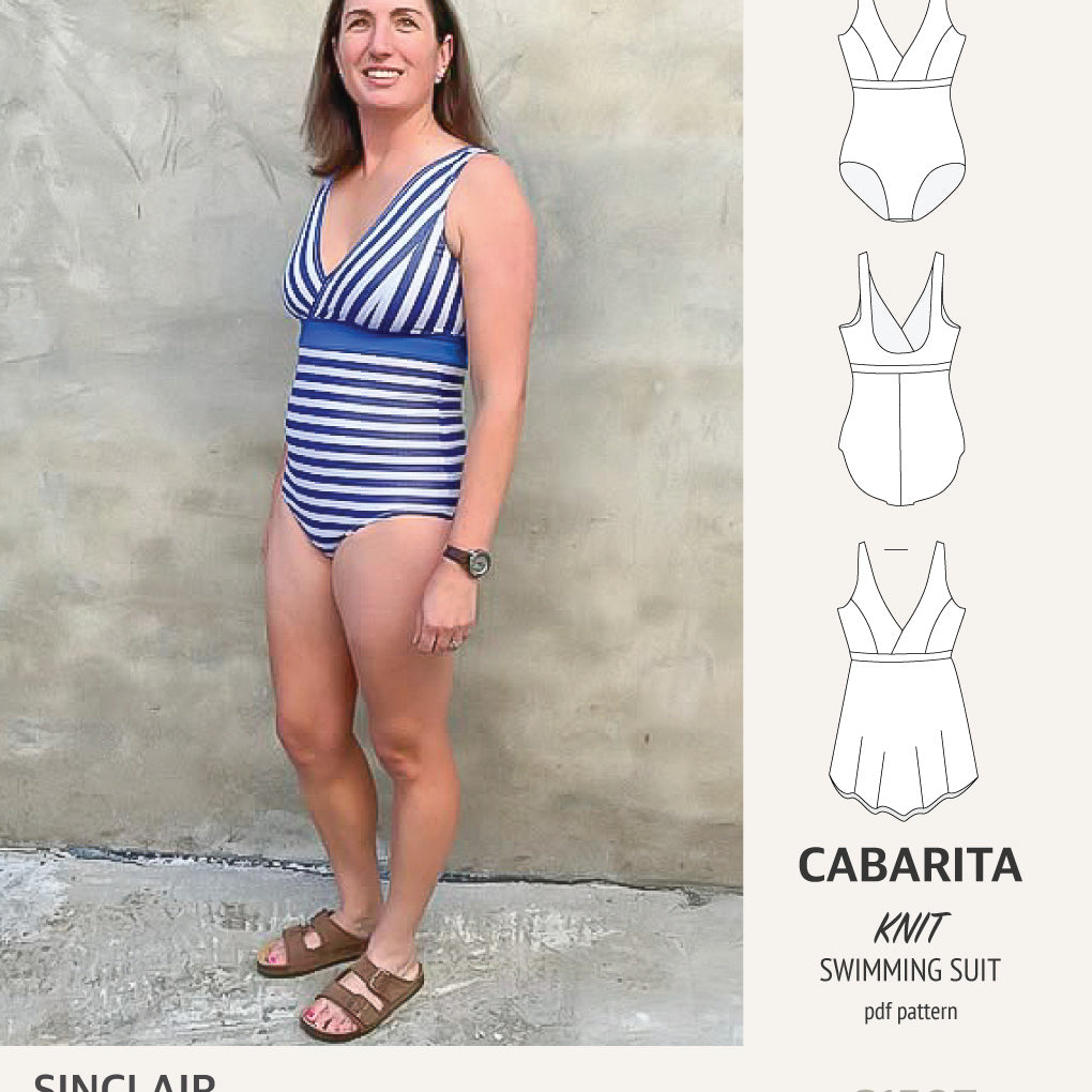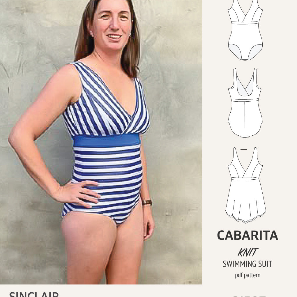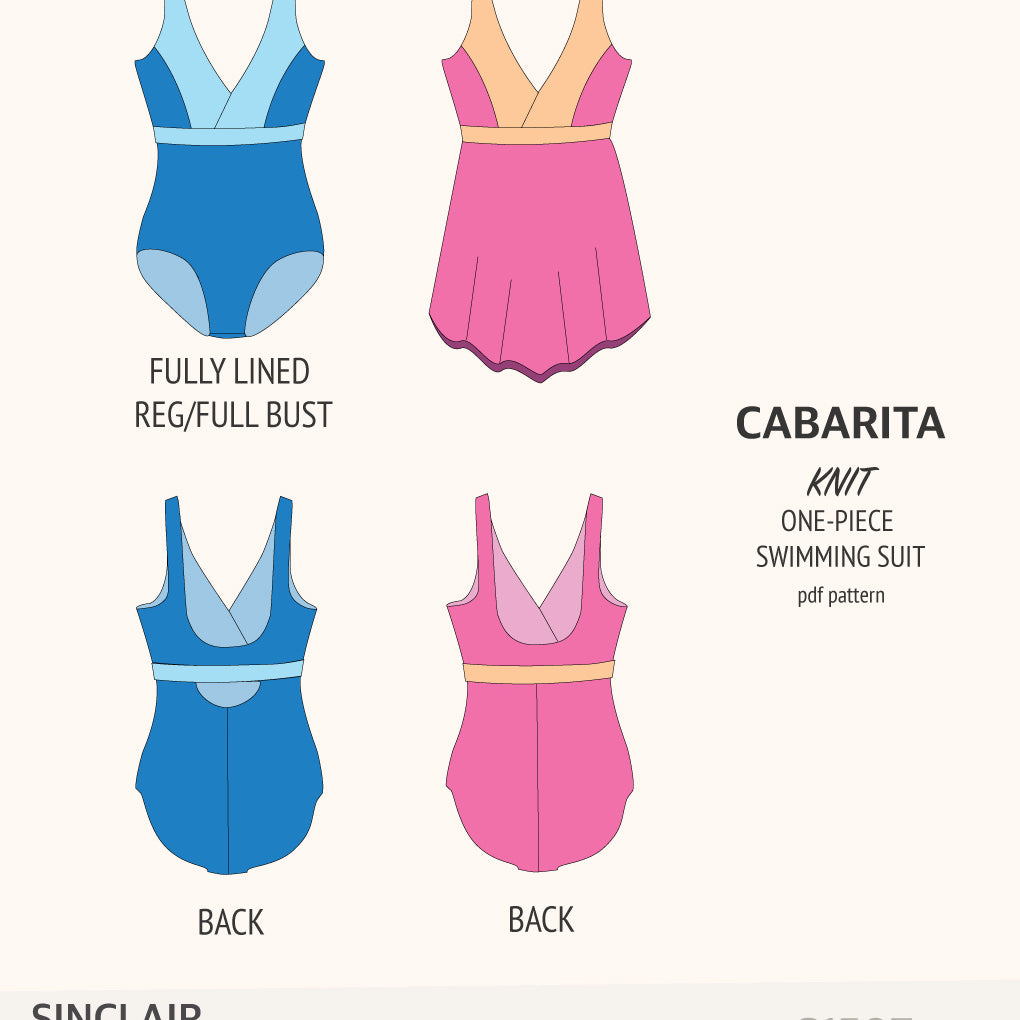 Cabarita V neckline one-piece swimming suit with a skirt overlay (PDF)
