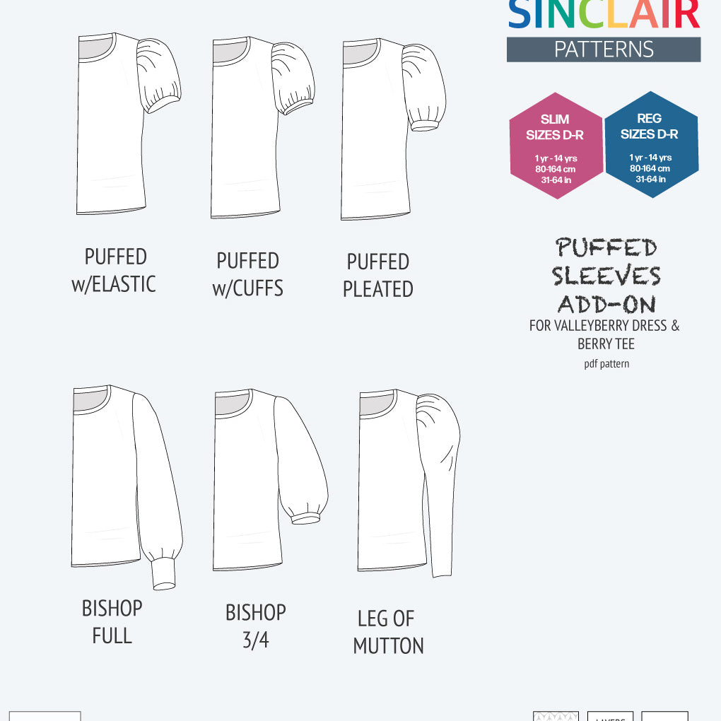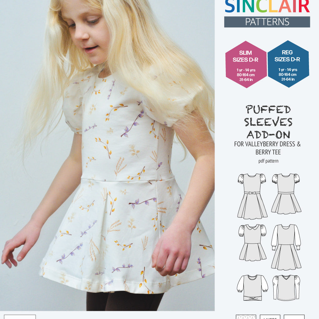 ADD-ON Puffed Sleeves add-on pack for Valleyberry dress and Berry tee other compatible patterns for children (PDF)