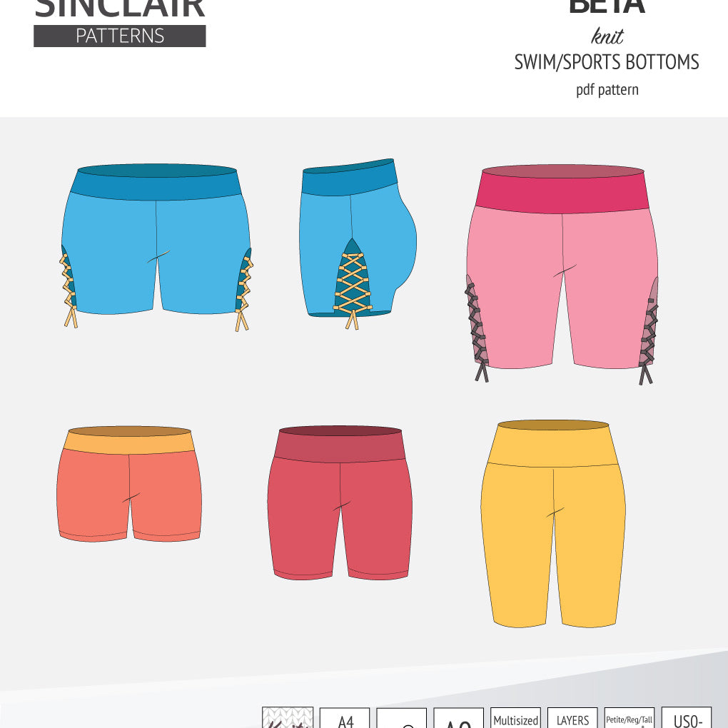 Beta swim/sports bottoms with a lace up accent option (PDF)