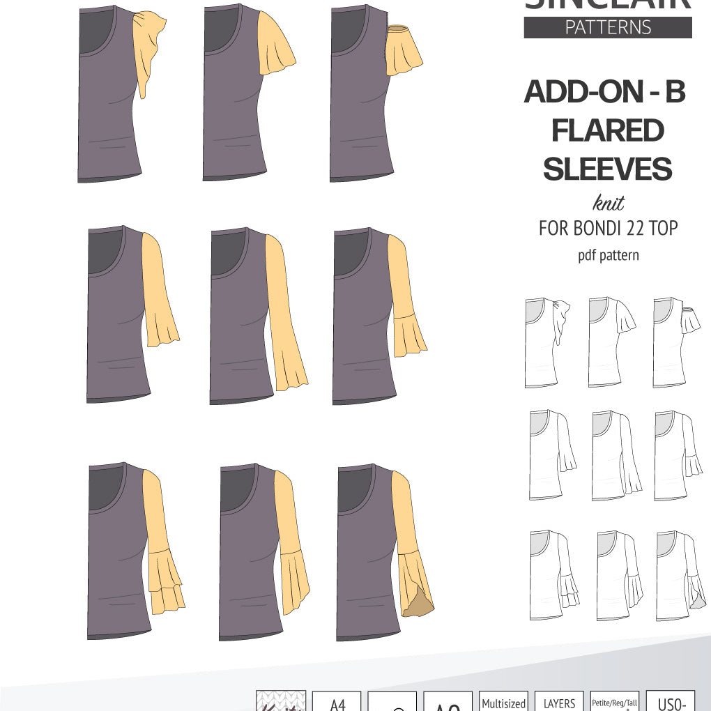 ADD-ON Flared Sleeves add-on pack for Bondi 22 and other compatible patterns (PDF)