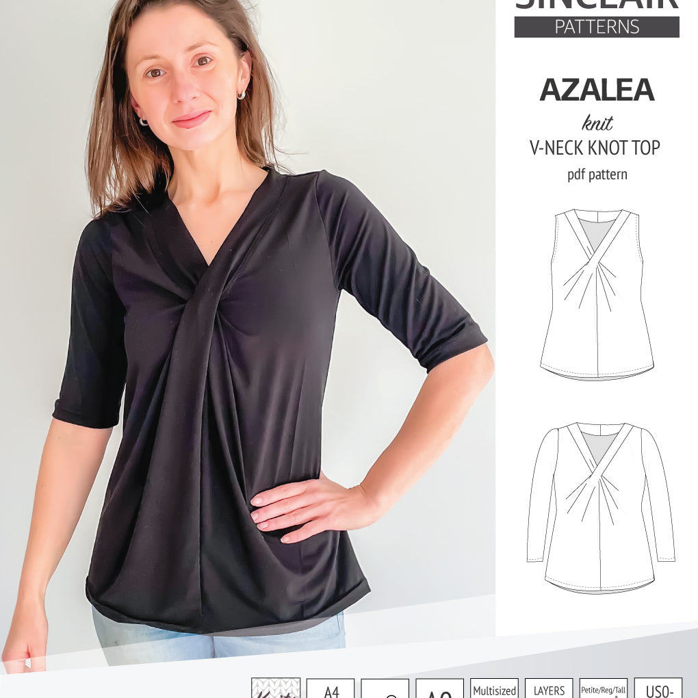 Azalea v-neck knot top for knit fabrics (PDF)
