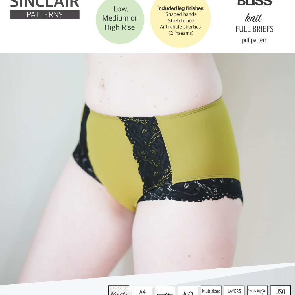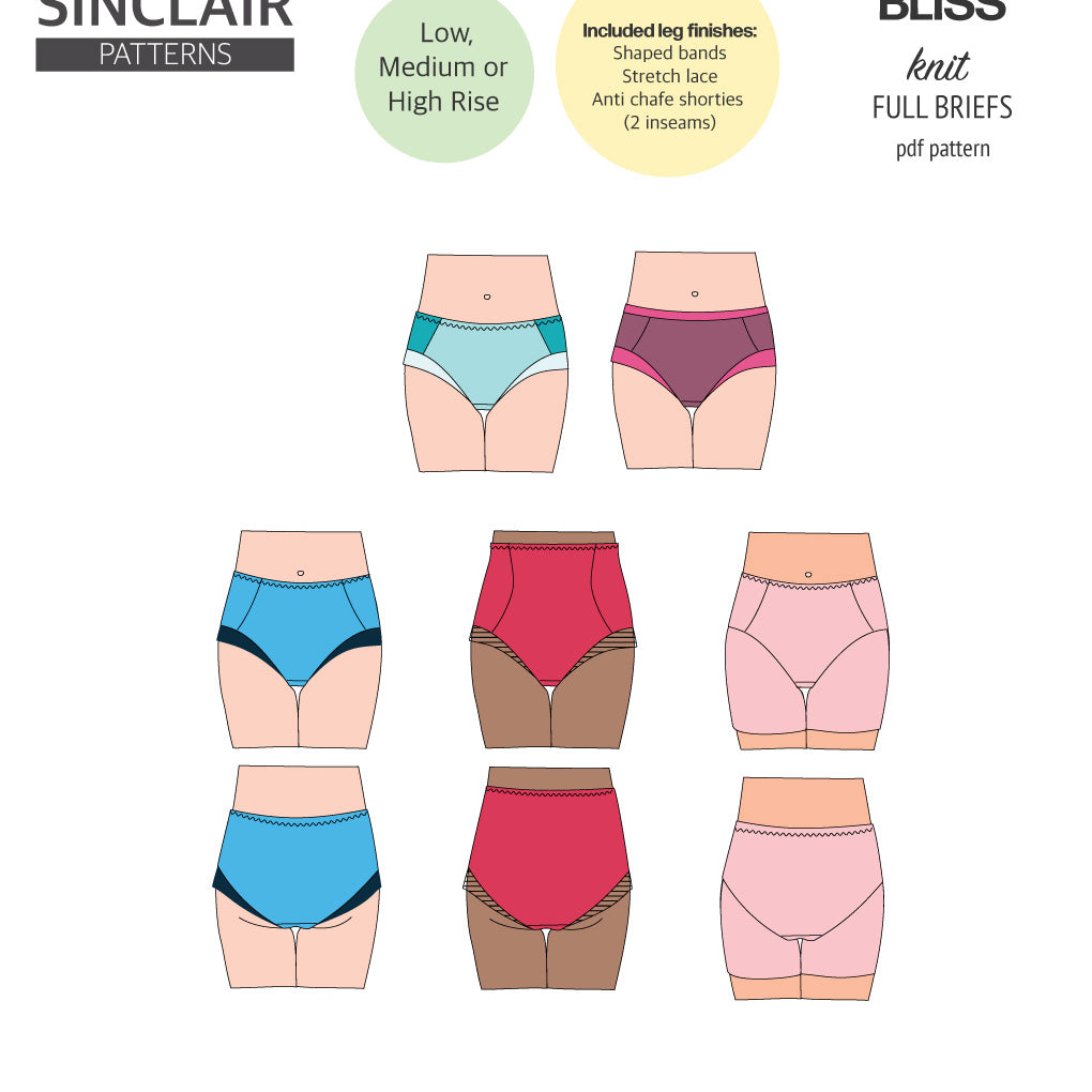 Bliss full briefs with bands, lace or anti chafe shorties (PDF)