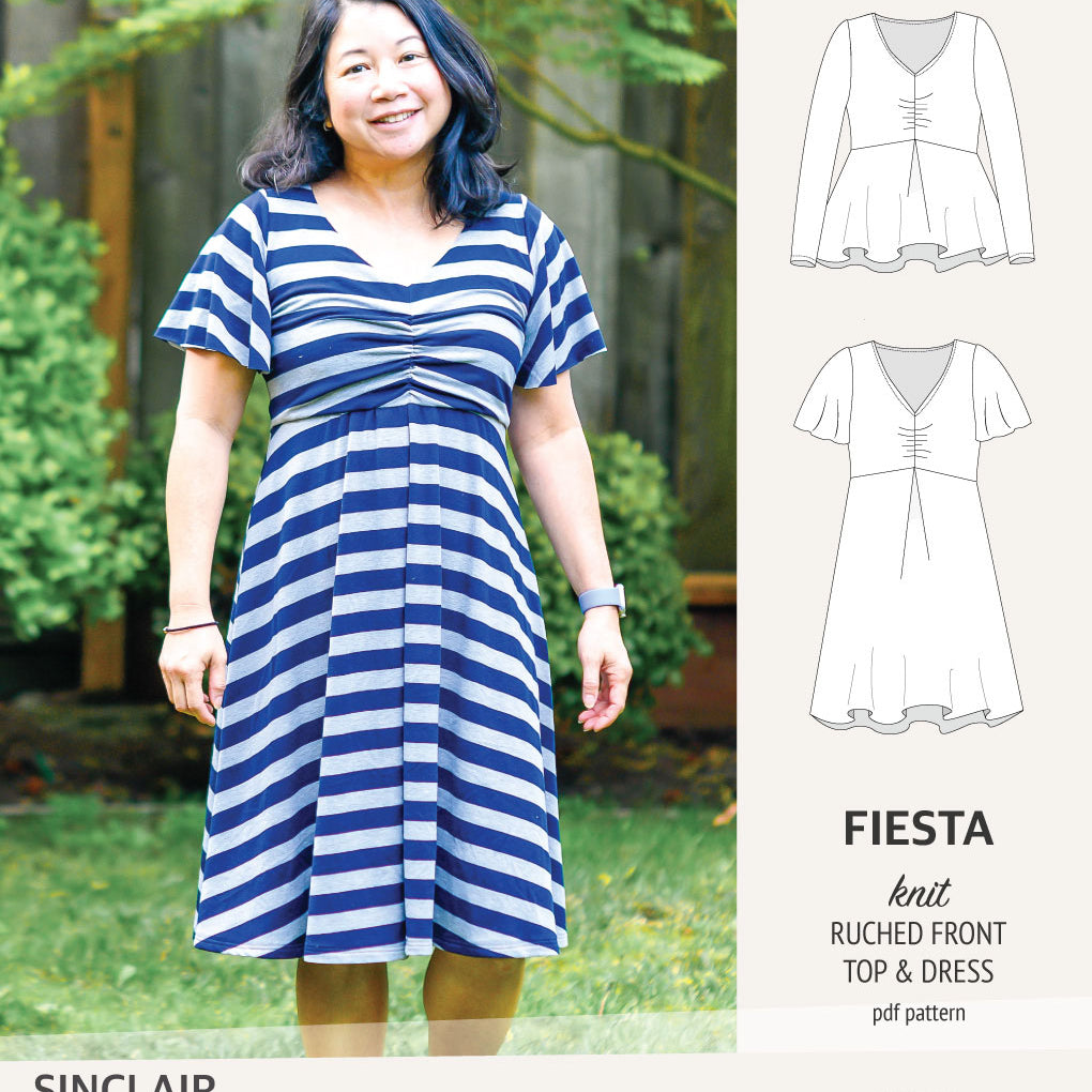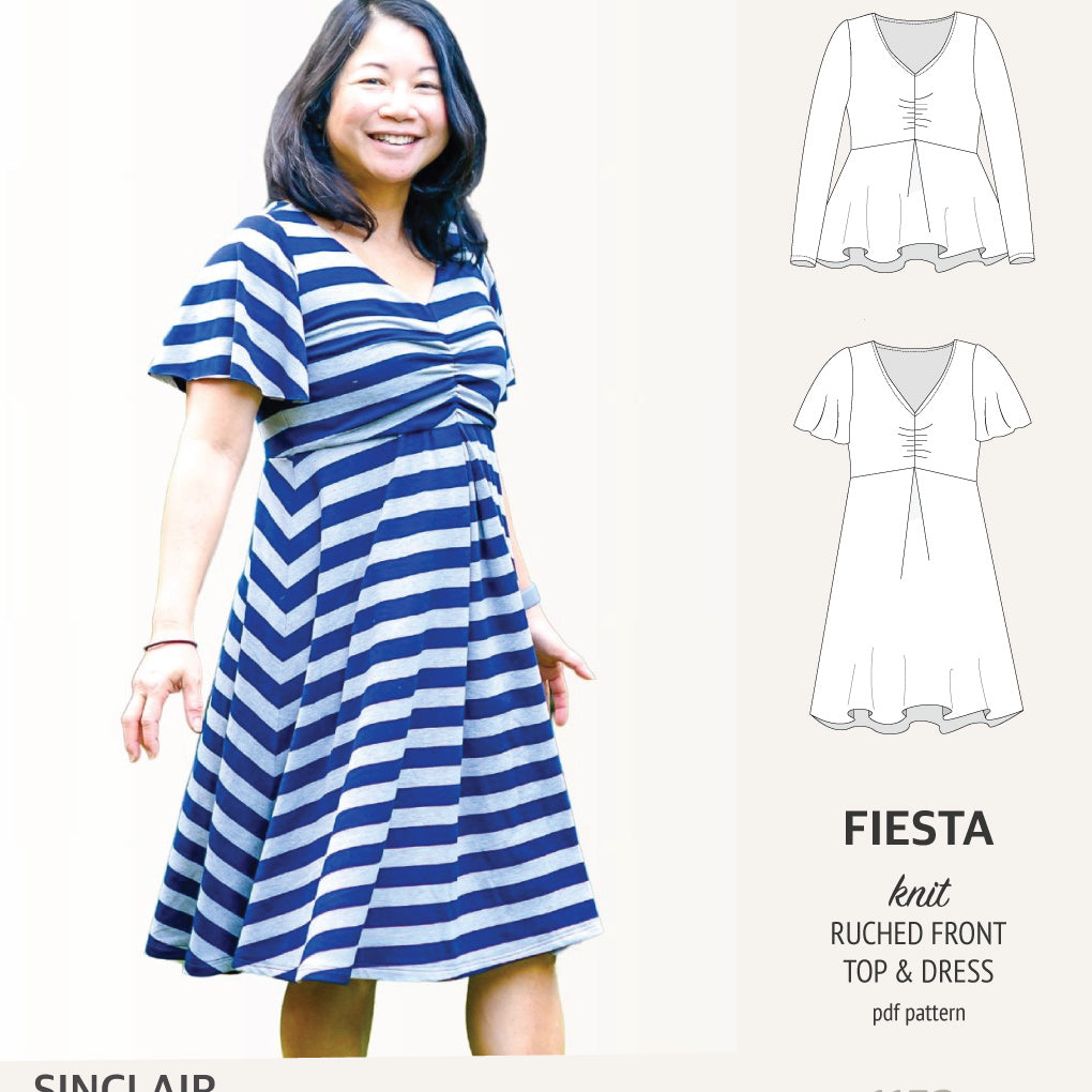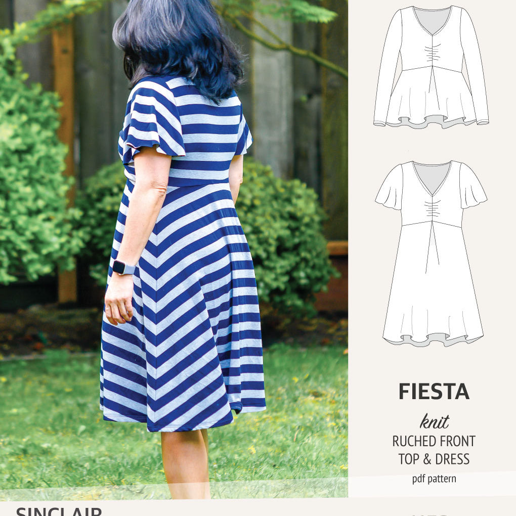 PDF Sewing pattern Sinclair Patterns S1046 Claudia godet style knit dress or tunic with flutter sleeves