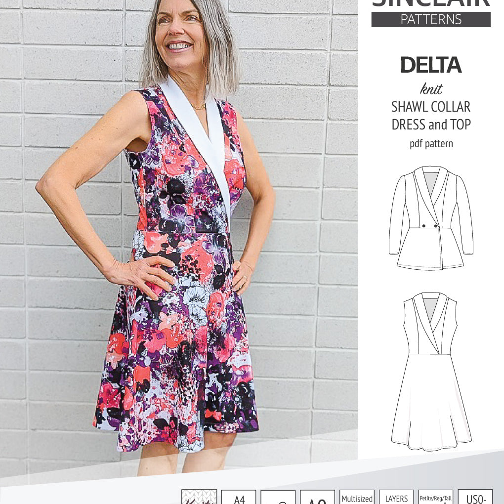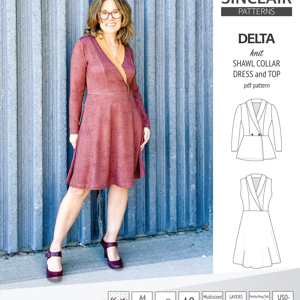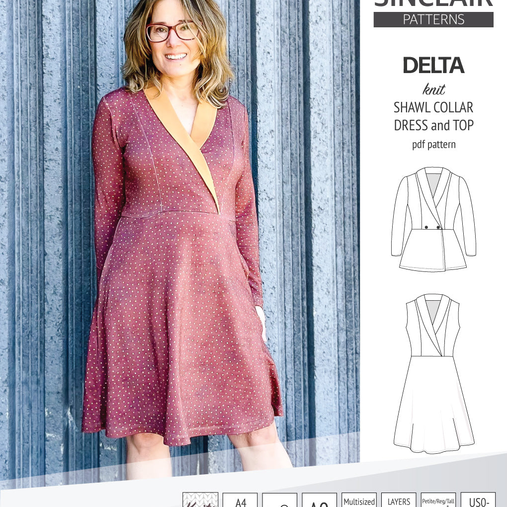 PDF Sewing pattern Sinclair Patterns S1046 Claudia godet style knit dress or tunic with flutter sleeves