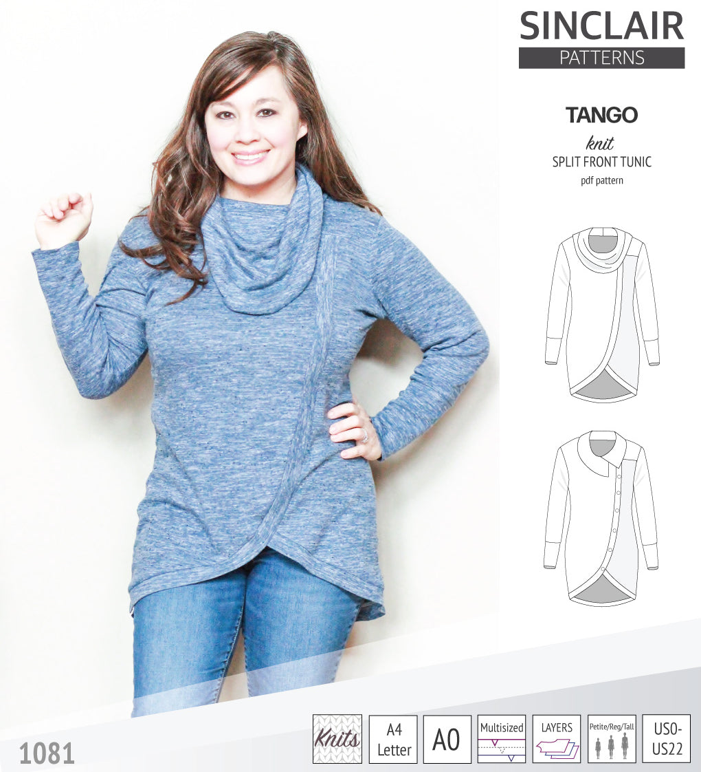 Pdf sewing pattern S1049 Jemma knit tunic with asymmetrical collar and pockets