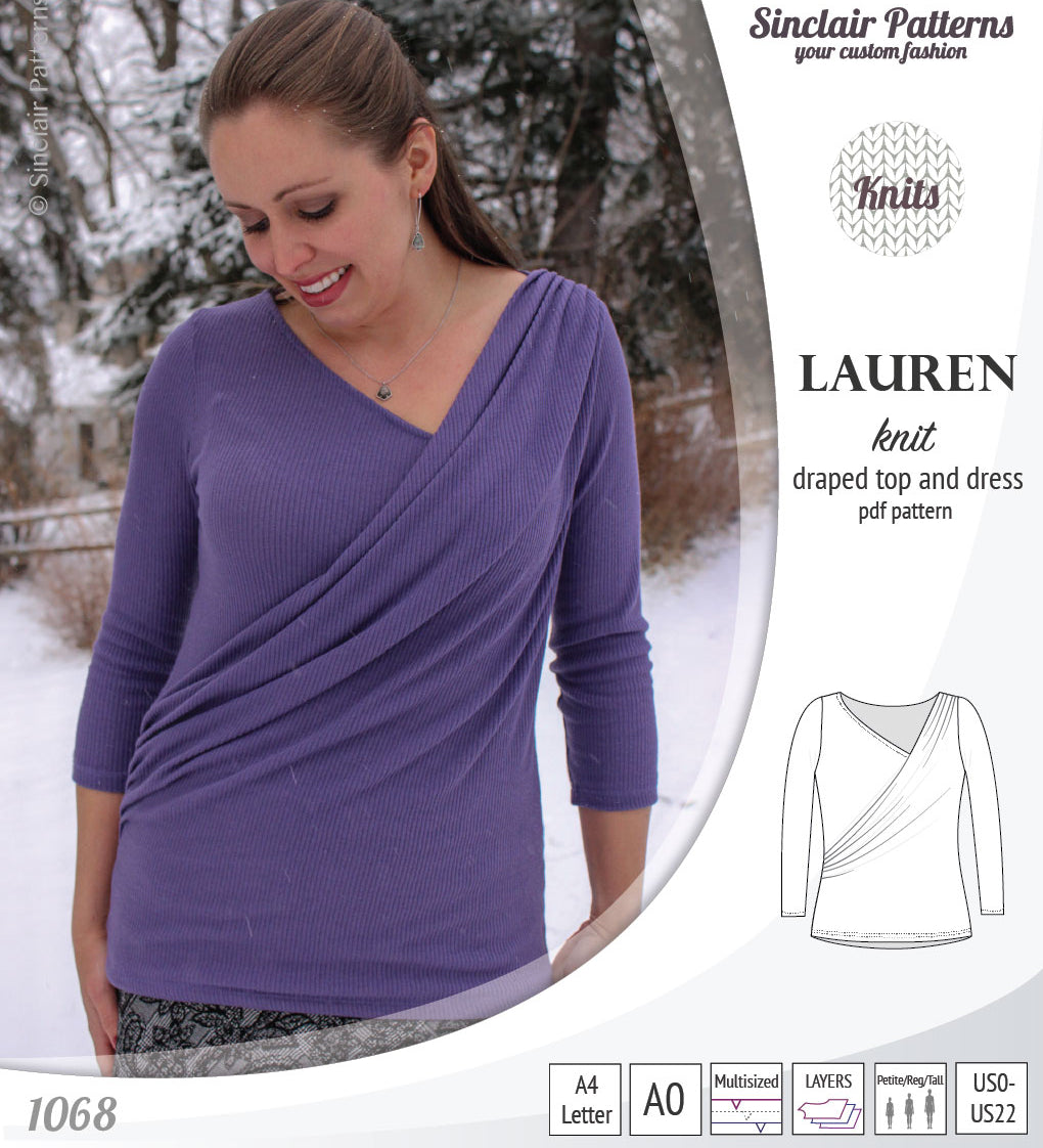 Pdf sewing pattern Macy cowl neck top by Sinclair Patterns